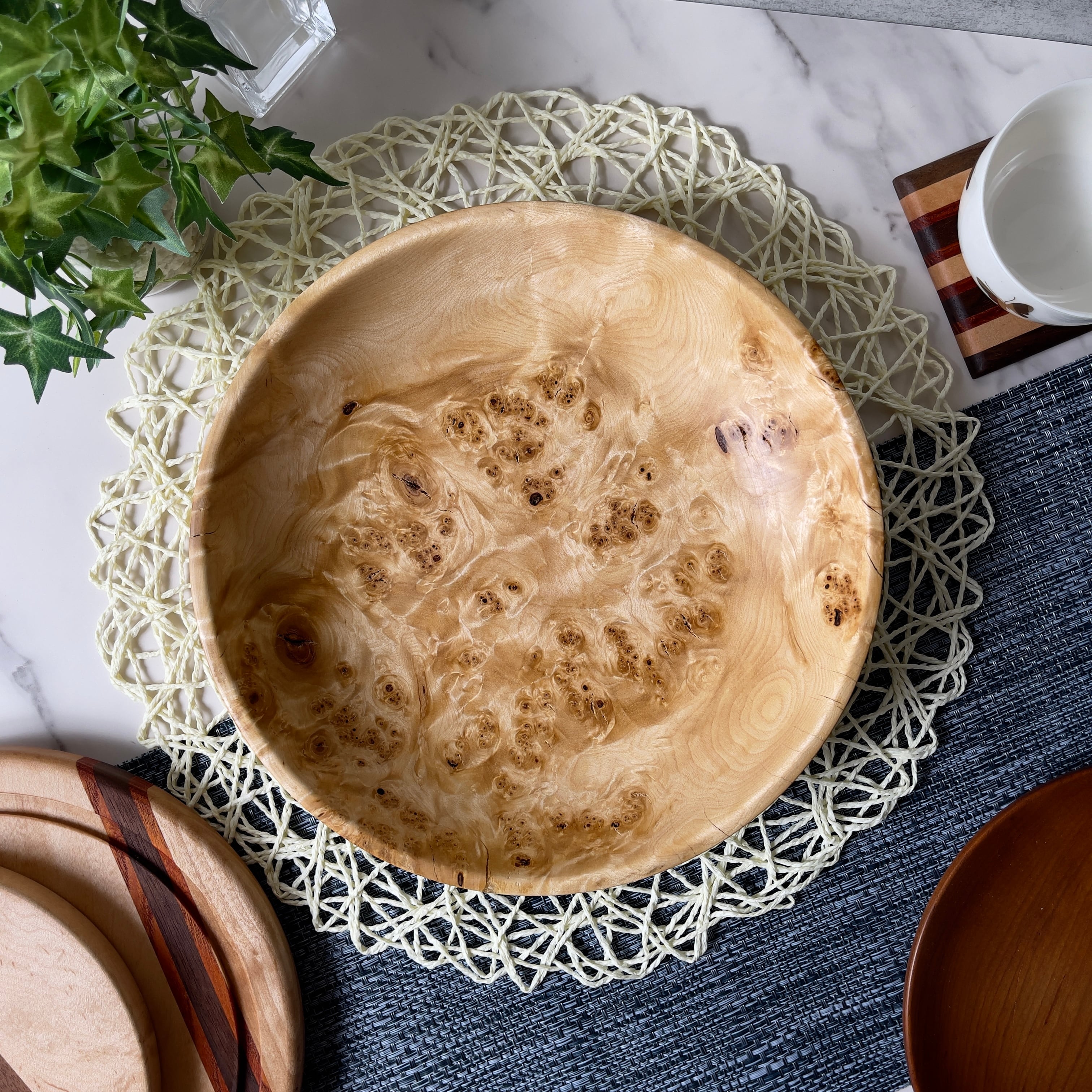 銘木屋だからこそ提供できる美しい瘤(コブ)杢が入った食器。